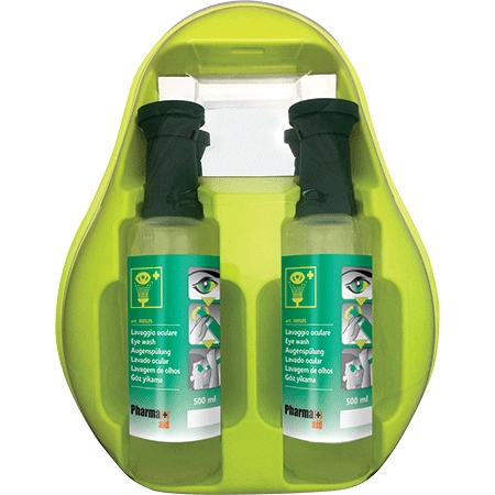 Contenitore pensile a parete per un’efficace primo lavaggio oculare d’emergenza. In materiale termoformato, viene fornito corredato di viti con tasselli. La confezione contiene uno specchietto e due flaconi di soluzione salina sterile da 500 ml. Confezione gialla fluo con coperchio trasparente. € 26,30 (IVA escl.)