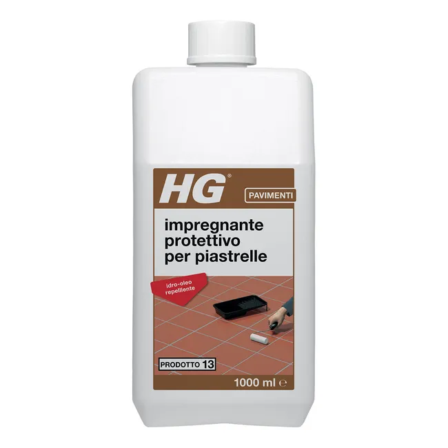 L'Impregnante protettivo per piastrelle HG (prodotto 13) è il prodotto essenziale per chi desidera mantenere le piastrelle della propria casa in condizioni ottimali. Scatola contenente 6 flaconi da 1000 ml. € 127,34 (IVA escl.)